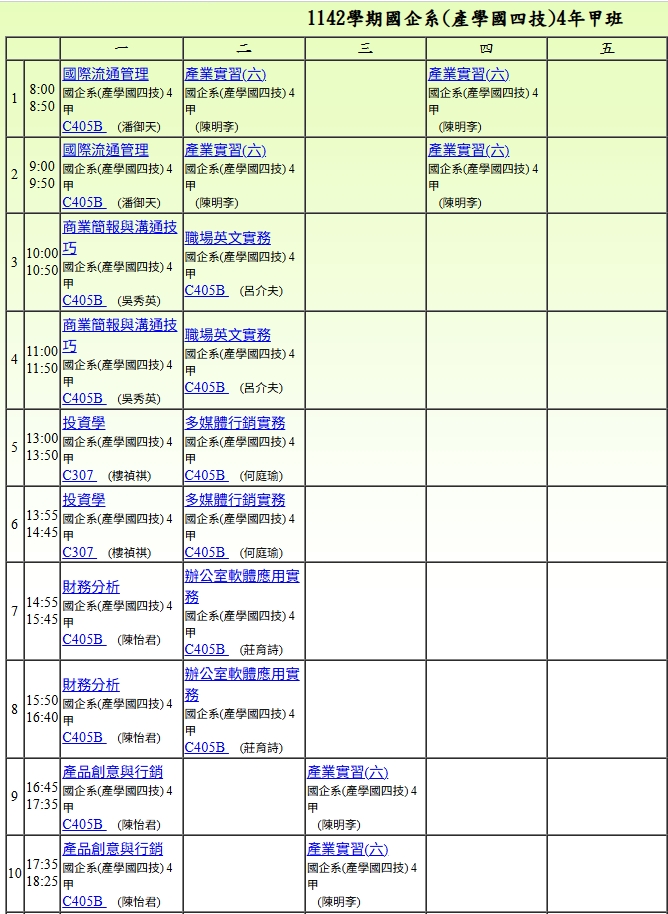 國企專班1142課表